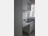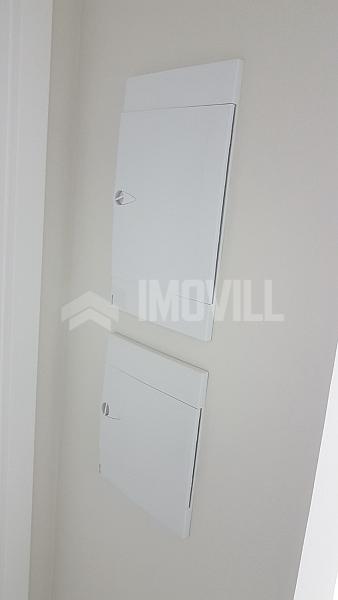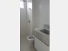 - Banheiro social com armários e mármore branco